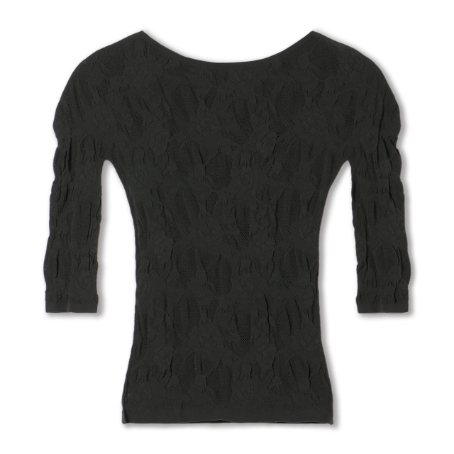 【ノーソーイングニット】シアーレースボートネックトップ 0102
