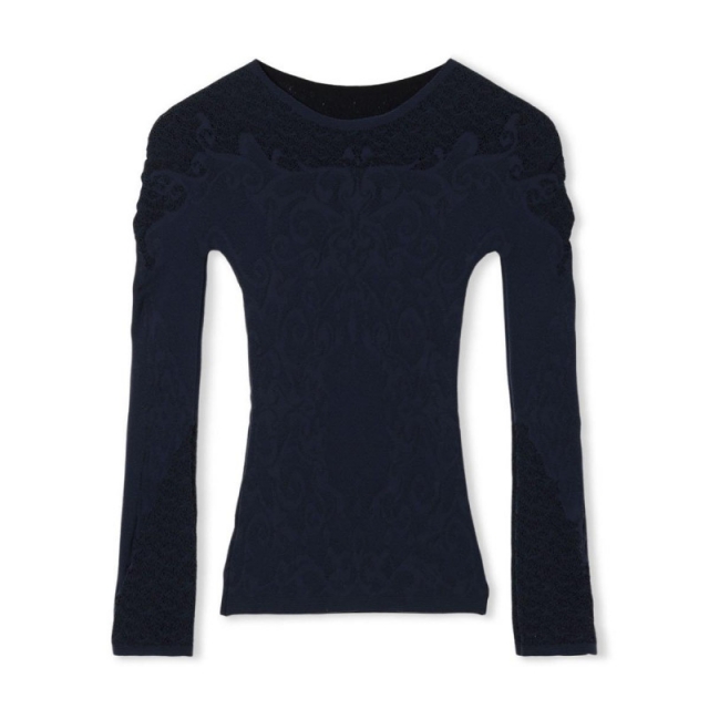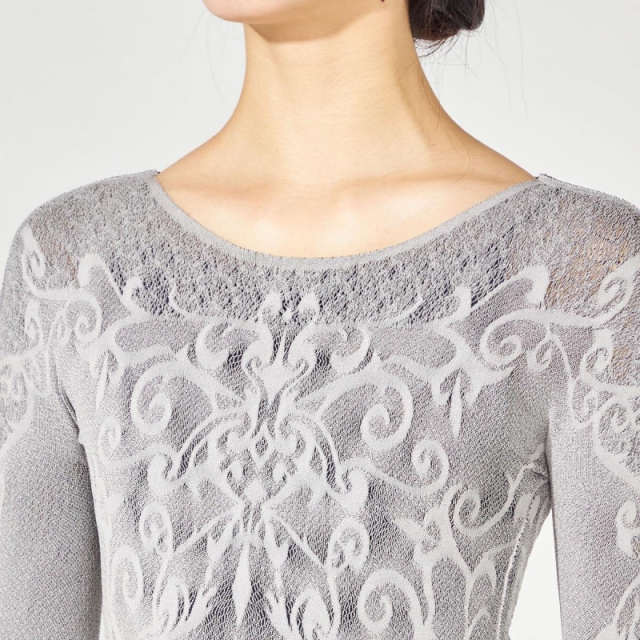 バレエの舞台をイメージした豪華な柄は身体のラインをシャープに見せる。
